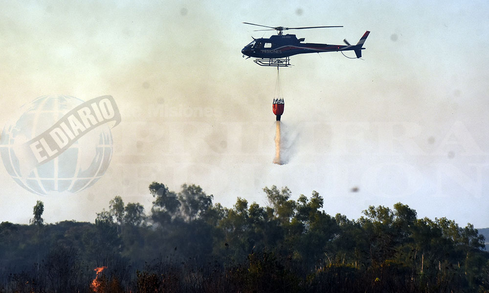 “Están trabajando tres dotaciones. Es un incendio de pastizal pero está cubriendo una superficie muy amplia y de muy difícil acceso en vehículos hacia ese lugar, entonces se está complementando el servicio con el helicóptero que va a brindar el apoyo desde el aire para hacer el enfriamiento sobre el frente de fuego que da hacia la parte de adentro, donde es imposible ingresar con los vehículos“.