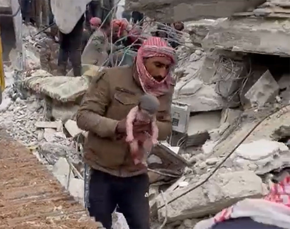 Entre tanta muerte y caos, este miércoles una beba recién nacida, aún unida a su madre por el cordón umbilical, fue rescatada de entre los escombros de un edificio de cuatro plantas que se derrumbó en Jindires, al noroeste de Siria, según informó el sitio