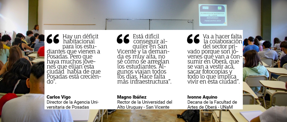 Por otro lado, a la situación de Posadas y San Vicente se le suma la de Oberá: localidad que incrementó significativamente su número de estudiantes a causa de la apertura de la primera carrera pública de Arquitectura este año.