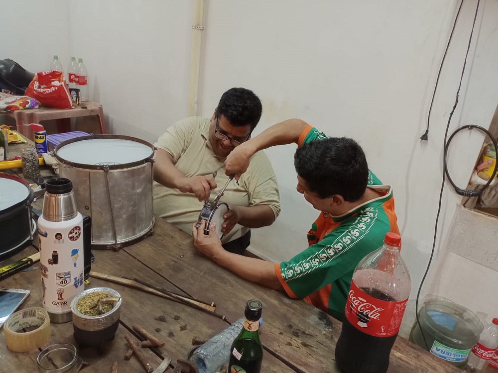También, Guayuán explicó: “Esto todo es a pulmón, se trabaja mucho a lo largo del año. Hacemos venta de pollo, recibimos alguna colaboración por ahí; pero casi todo es colaboración familiar. Nos juntamos en alguna casa y cosemos, arreglamos tocados, se ponen a punto los instrumentos, detalles de la comparsa en general, todo en un ambiente de familia y vecinos”.