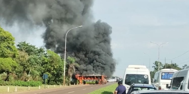 En la calurosa mañana de este viernes, en Puerto Iguazú, un colectivo que prestaba el servicio urbano de pasajeros desde el Hito de las Tres Fronteras hacia el kilómetro 5, se incendió por completo en ese tramo de la ruta 12, pero más allá de los daños materiales no hubo que lamentar víctimas.