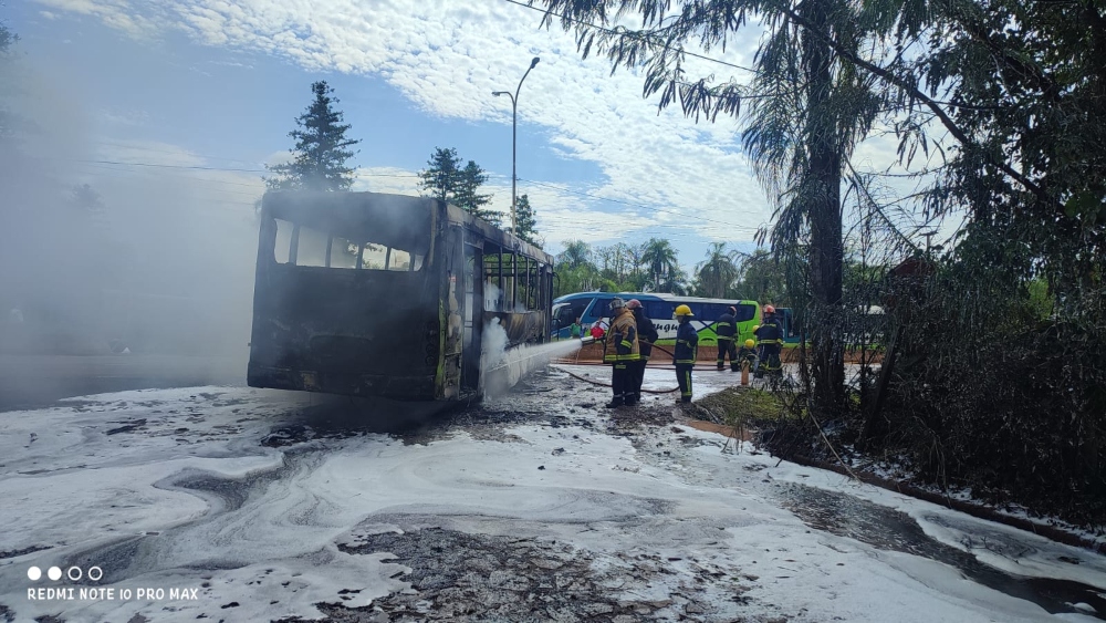 De acuerdo a fuentes policiales se constató en el lugar mencionado que, un ómnibus se encontraba consumido por las llamas, pese al intento de los Bomberos Voluntarios para sofocarlas.