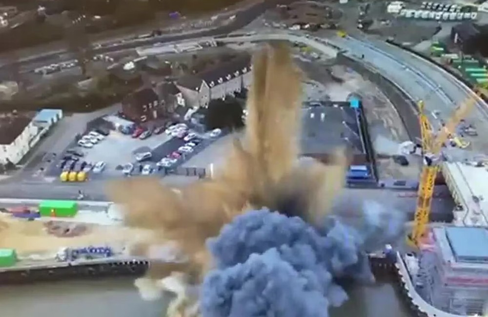 The unexploded bomb in #GreatYarmouth detonated earlier during work to disarm it. Our drone captured the moment. We can confirm that no one was injured. Public safety has been at the heart of our decision making all the way through this operation, which we know has been lengthy. pic.twitter.com/9SaeYmHkrb