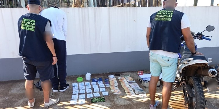 Efectivos de la Dirección Drogas Peligrosas de la Policía de Misiones detuvieron estar tarde en Posadas a un joven de 19 años, con 22 dosis de clorhidrato de cocaína y la suma de 35.080 pesos. El sospechoso al mando de una motocross de 150 cilindradas, recorría la zona del barrio Villa Poujade eny sus alrededores, vendiendo drogas.