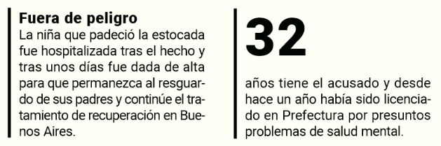 En tanto que la menor, tras algunos días de permanecer internada, fue entregada a sus padres para continuar con la recuperación. Como el progenitor presta servicio en Buenos Aires, ya habrían abandonado la tierra colorada.
