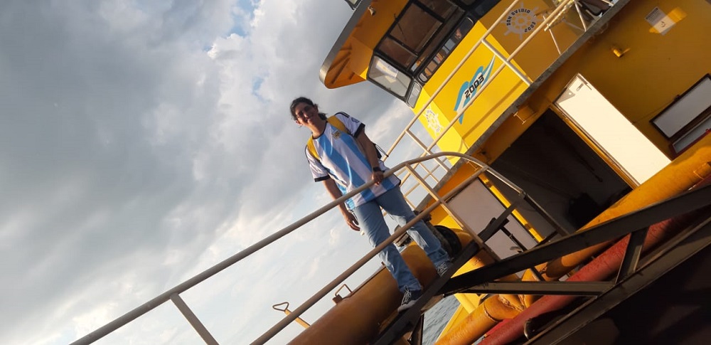 “Él hace años me venía insistiendo que pruebe en la marina. Yo primero no le hice caso y empecé a estudiar otras cosas, pero después de dos años me animé y fue así que terminé recibiéndome como marinera de cubierta en la Escuela de Formación y Capacitación para el Personal Embarcado de la Marina Mercante (EFOCAPEM) que está dentro de la Prefectura. Fui la primera mujer de mi promoción en recibirse”, narró.