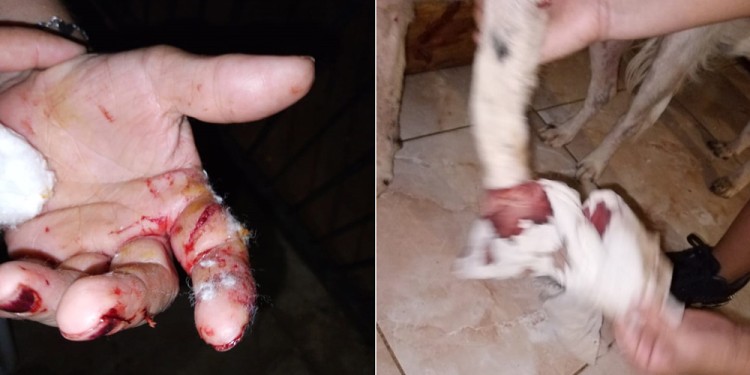 Asimismo, profirió mordidas en los dedos de ambas mujeres, quienes intentaron defender a su can.