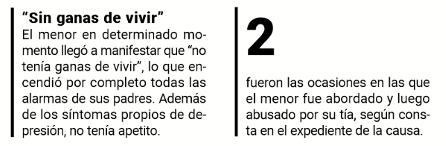 Pese a suceder todo bajo el mismo techo nadie notó nada extraño. Sin embargo, el instinto maternal fue clave para que el menor decidiera romper el silencio. En base a las pericias psicológicas y testimoniales en la causa se pudo establecer que el menor sufrió secuelas emocionales por los abusos.