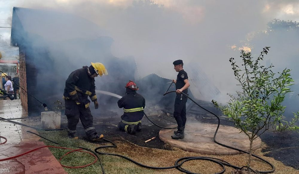 Rápidamente, los uniformados en conjunto con Bomberos Voluntarios de la localidad se hicieron presentes en el lugar y lograron controlar el incendio que afectaba a la construcción de mampostería y madera, propiedad de una mujer de 68 años, aunque reportaron que los daños materiales fueron totales.