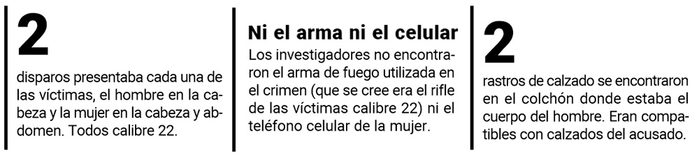 Durante la investigación se supo que el robo se descartó como móvil del hecho. La pareja se ganaba la vida como agricultores y según la fiscalía hasta ayer el hijo de las víctimas no supo justificar qué hizo entre las 20 del sábado 21 de septiembre de 2019 hasta que halló los cuerpos en las primeras horas del día siguiente.