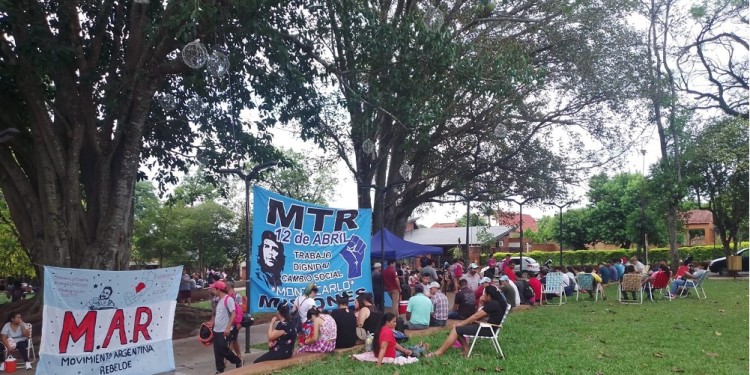 Un grupo de alrededor de unas 200 personas, miembros de las organizaciones sociales MAR, MTR 12 de Abril, MTR Cuba y 17 de Noviembre se concentraron desde esta tarde en la plaza San Martín de Montecarlo, en la avenida El Libertador y calle Chacabuco.