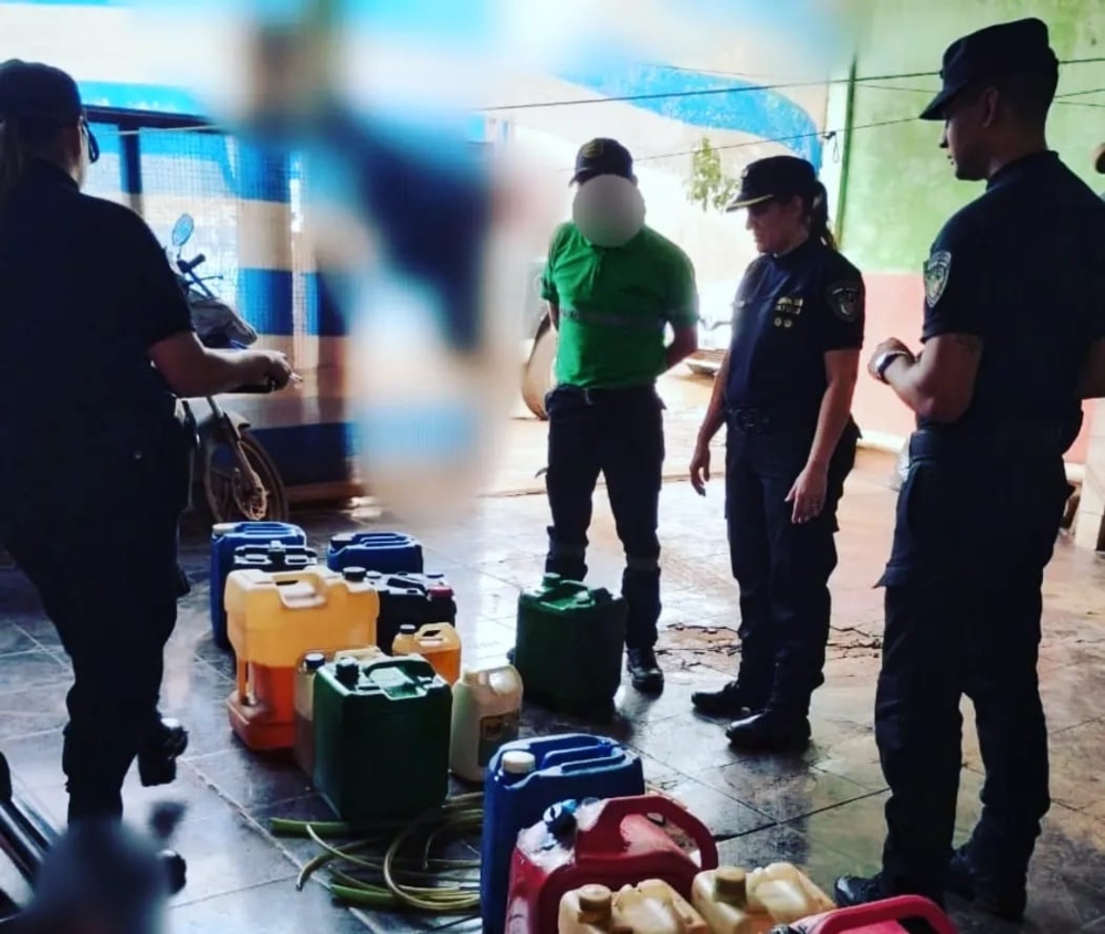 En otro procedimiento efectivos de la Comisaría de la Mujer local  llegaron hasta una vivienda del barrio San Martín cumpliendo un oficio del Juzgado de Instrucción de Iguazú a raíz de un hecho de índole familiar donde la damnificada era una menor de edad. Al llegar al domicilio descubrieron  que en lugar se hacía venta ilegal de combustible.