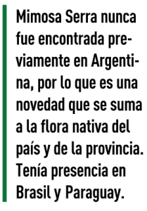 Y especificó: “una de ellas es una mimosa, Mimosa Serra, la cual nunca fue encontrada previamente en la Argentina, por lo que es una novedad que se suma a nuestra flora nativa”. Esta especie hasta ahora sólo era conocida en campos y bañados del sur de Brasil y de Paraguay.