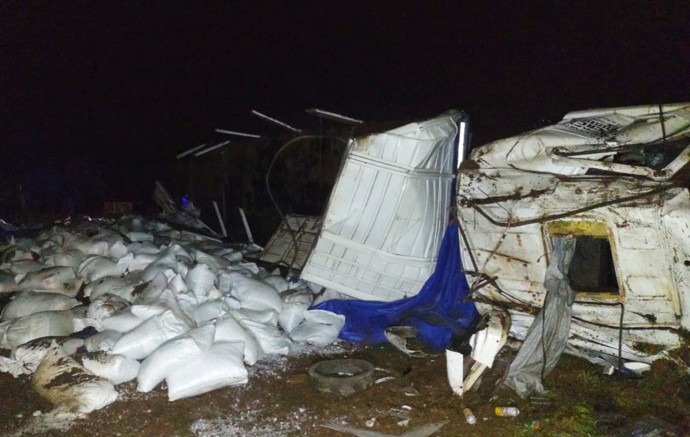 A raíz del impacto, el primer rodado, que transportaba fertilizante, se llevó la peor parte y terminó volcando a la vera de la ruta. Los ocupantes, con visibles lesiones de distinta consideración fueron trasladados al hospital de Santo Pipó.
