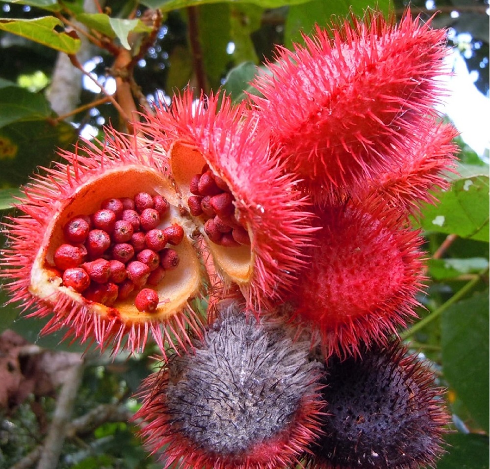 El color rojo anaranjado de la cubierta de sus semillas las vuelven sumamente atractiva, el rojo anaranjado, intenso y persistente, que queda cual marca, mancha, señal, indicio, delatora o indicadora, como sangre que puede significar o resignificar, dependiendo del caso, de los hechos, de la historia, de lo esperado, de las estructuras, de saber o no saber, de sentir o no sentir, que la sangre es, lo que se transmite, lo que tenemos por dentro, de lo que vienen nuestros antepasados, y están dentro nuestro, en el hierro, en el hematíe cuyo núcleo desaparece al madurar y ¿entonces? ¿Qué somos? ¿Acaso perdemos identidad cuando desaparece el núcleo de este tipo celular?