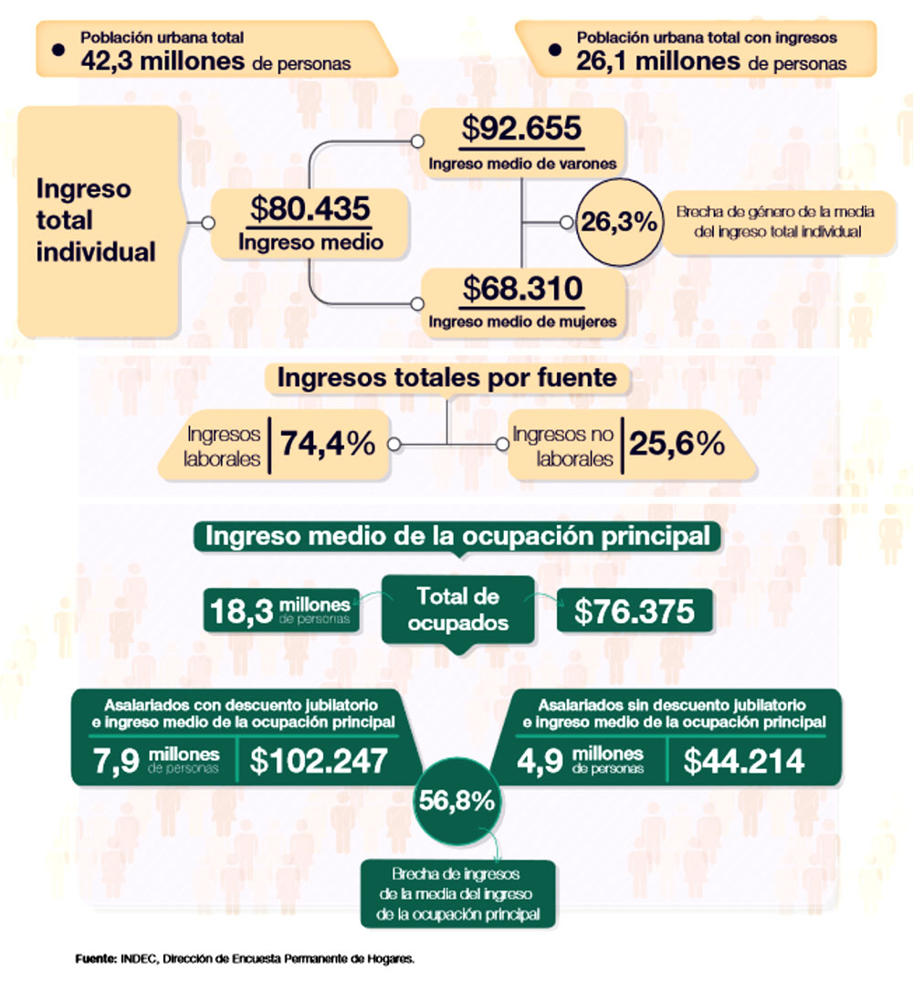 Aún así se pueden tomar como parámetro algunos datos oficiales del INDEC, sobre los ingresos de la población argentina.