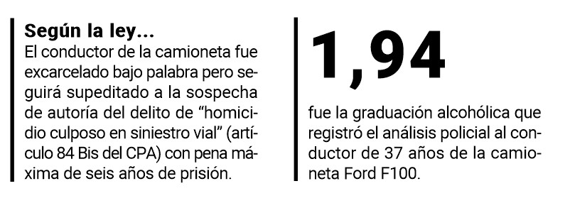 Desde ese momento el caso se caratuló como “homicidio culposo en accidente de tránsito” y el conductor de la camioneta permaneció detenido seis días.