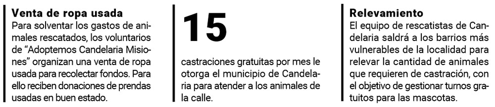 Los rescatistas de mascotas de Candelaria no dan abasto ante la cantidad de mascotas abandonadas que se registran todos los días. Se trata del grupo “Adoptemos Candelaria Misiones” conformado por al menos 17 personas que colaboran en distintas tareas de rescate animal.