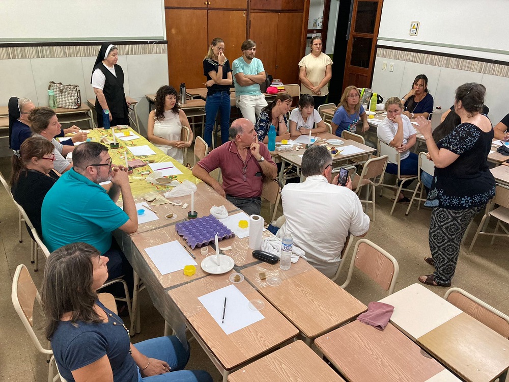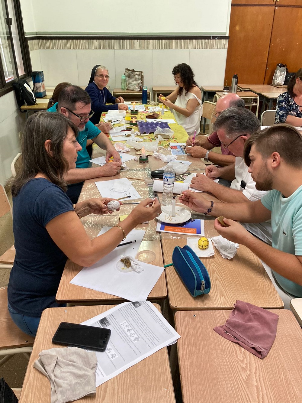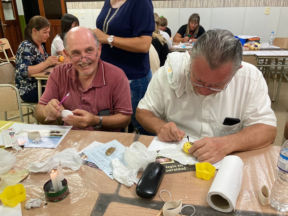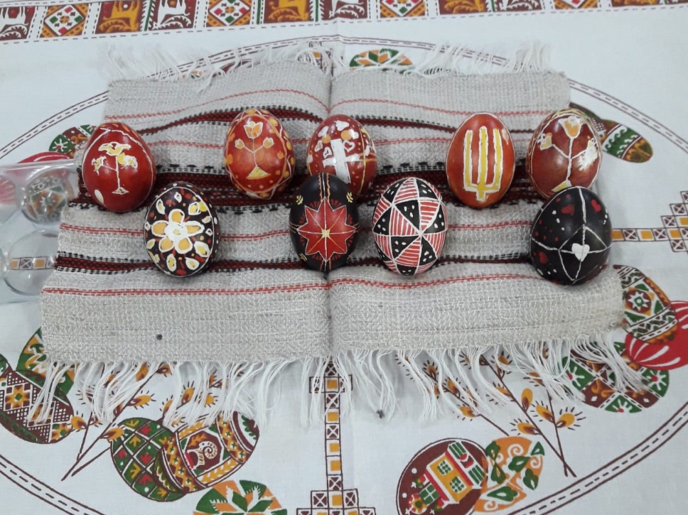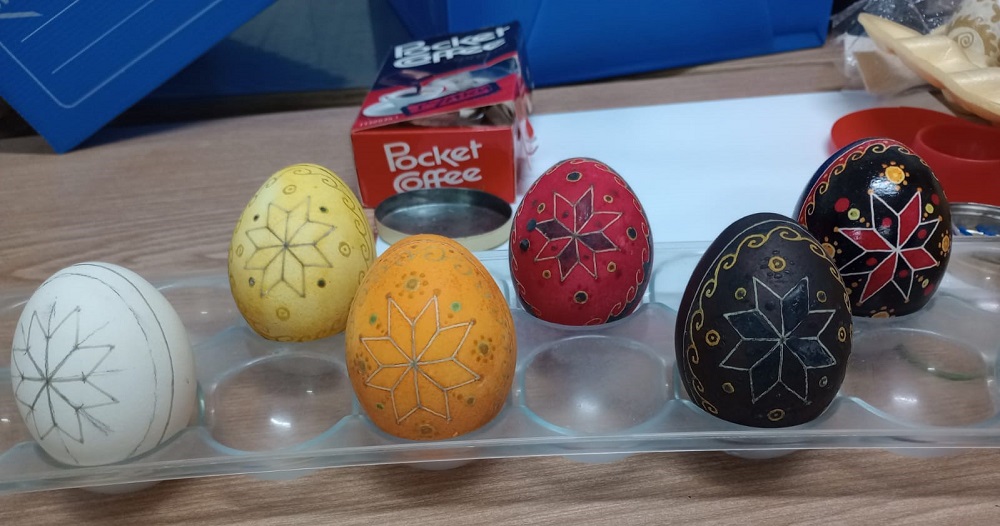 El taller del lunes y martes fue amenizado con la ornamentación de los tradicionales Pesanké, que “también vienen desde la cultura, pero desde la práctica. Y también están muy relacionados con la fe porque es una de las formas de prepararse para la Pascua”.