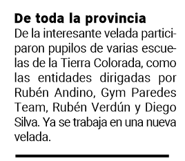 Además, el posadeño Lautaro Zayas y Walter Cardozo, también de 25 de Mayo, no se sacaron ventajas y firmaron un empate, mientras que el ascendente púgil posadeño Carlos Benítez superó por puntos a Sergio “El Tosco” Cardozo, oriundo de Puerto Rico.