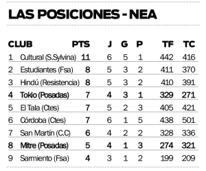 Por otro lado, Tokio, el otro representante misionero en la tercera categoría del básquetbol nacional, jugará el sábado y su rival será Hindú de Resistencia. El encuentro se cumplirá en la capital chaqueña, a las 22.