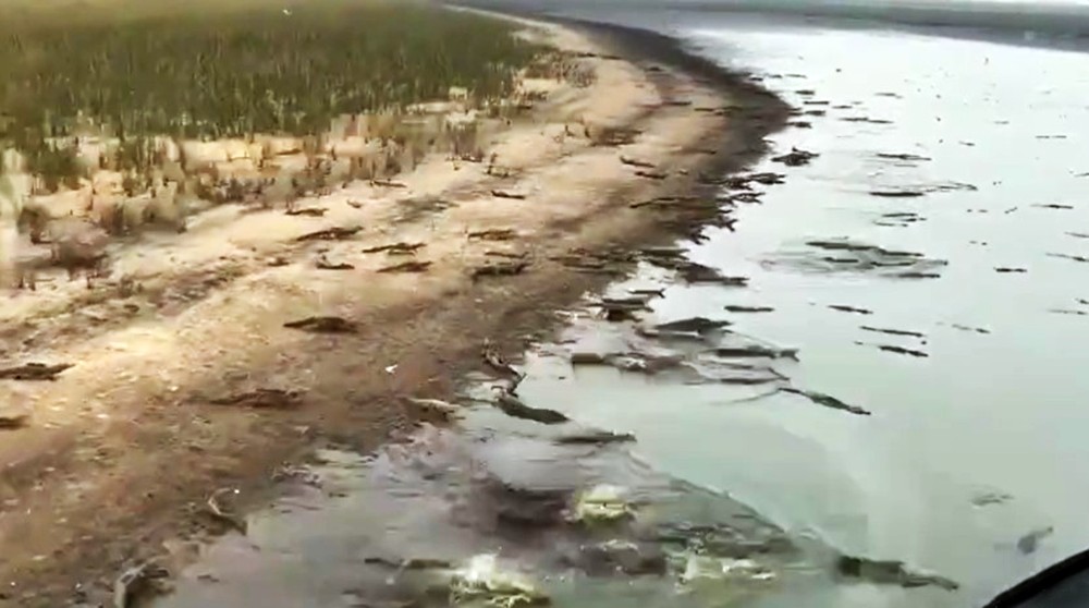 Imagen aérea del Rio #Corrientes. En la imagen podemos ver miles de ejemplares de Yacare entre otras especies que se refugian de la sequía en lo poco que queda de caudal en este río. El impacto de la sequía y los incendios en la provincia no dan tregua. pic.twitter.com/Jdv6KxfUY2