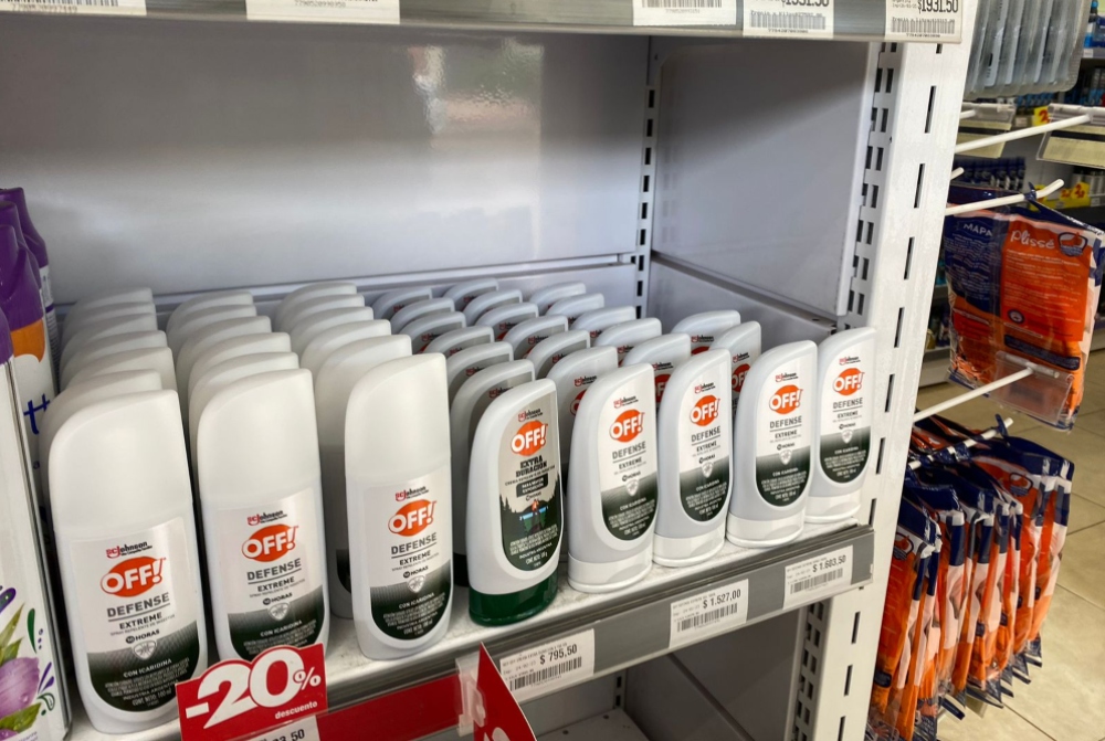 Según el relevamiento que realizó este Diario, en las farmacias posadeñas un repelente de tamaño medio (200 gramos) en crema cuesta de 650 a 770 pesos: un precio que varía según si el producto es catalogado de “larga duración”, o para niños o bebés. A su vez, “Off!” es una de las únicas marcas que acapara las góndolas en las farmacias, a comparación de los supermercados, donde hay más alternativas disponibles.