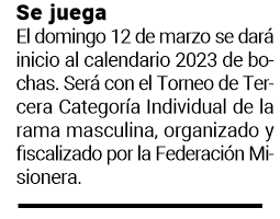 Está todo preparado para dar inicio al calendario 2023 de la Federación Misionera de Bochas y el comienzo será en Aristóbulo del Valle el próximo domingo.