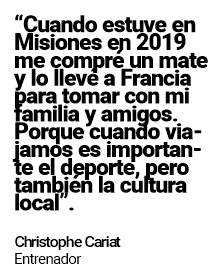Cariat tiene en Francia un pedazo de cultura argentina. “Cuando estuve en la provincia hace cuatro años me compré un mate y lo llevé a Francia para tomar con mi familia y amigos. Porque cuando viajamos es importante el deporte, pero también la cultura local; así que tratamos de hablar con los argentinos, de compartir experiencias y el mate es una de ellas”, remarcó.