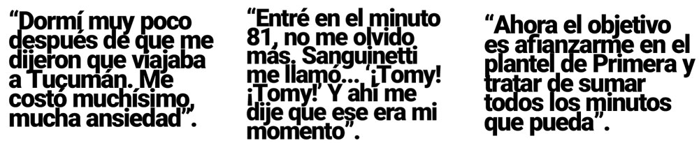 Entré en el minuto 81, no me olvido más, estaba en un cumpleaños (se ríe). Estábamos todos calentando… Sanguinetti ya había hecho dos cambios en el entretiempo y otros dos en el segundo tiempo, así que quedaba solo uno… Y ahí él mismo me llama… “¡Tomy! ¡Tomy!”. Y ahí me dije que ese era mi momento. Te pasan muchas cosas por la cabeza, es una sensación única, parecía como salido de una película, con el estadio lleno, los reflectores. Fue una experiencia única.