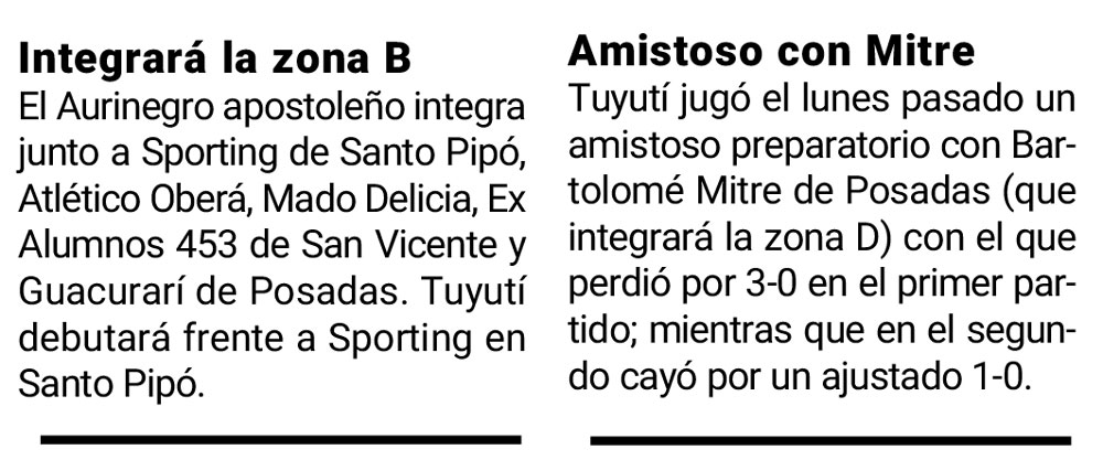 En la zona B, Tuyutí debutará frente a Sporting de Santo Pipó, luego recibirá a Atlético Oberá. Seguidamente a Ex Alumnos 453 (V), Mado Delicia (V) y Guacurarí (L).
