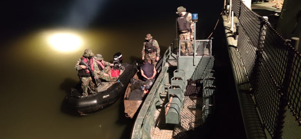 Al llegar a la altura del kilómetro 1612 margen izquierda del citado cauce, el único ocupante del bote, al notar la presencia de las autoridades se arrojó al agua, siendo rescatado y aprehendido, interceptando luego el bote que se encontraba a la deriva con bultos en su interior. Dentro de la embarcación hallaron ocho bultos envueltos en bolsas negras tipo consorcio, utilizadas comúnmente para el tráfico de marihuana.
