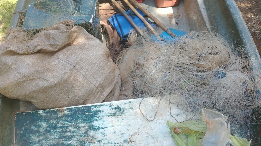 También se decomisaron cinco redes de aproximadamente 600 metros en total, las cuáles también eran utilizados para la pesca ilegal en dicho lago, en el norte de Misiones.