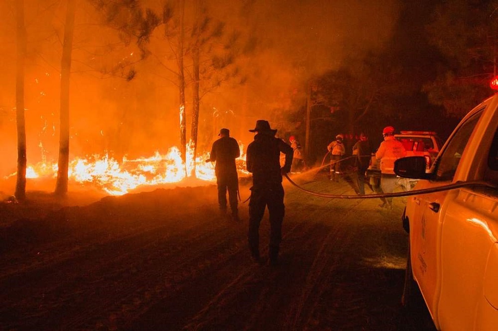 Con aviones hidrantes y equipos terrestres, el trabajo conjunto de todas las fuerzas abocadas a esta labor no da abasto, y el viento reaviva las llamas que avanzan sin parar en lugares de esteros secos, líneas de alta tensión y alimañas, haciendo muy peligrosa la tarea humana.