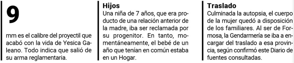 Pero esto esta decisión está vinculada a cómo quede la situación procesal del padre de la criatura. En caso que recupere la libertad, podría reclamar la tenencia del bebé. Mientras, una niña de 7 años que era hija de la mujer de una relación anterior, será entregada a su padre biológico; quien, según se supo, vive en Buenos Aires. Completada la pericia forense en cuerpo de Yesica quedó a disposición de sus familiares para su inhumación. Al ser de Formosa, la iban a llevar a esa provincia y el traslado iba estar a cargo de la Gendarmería.