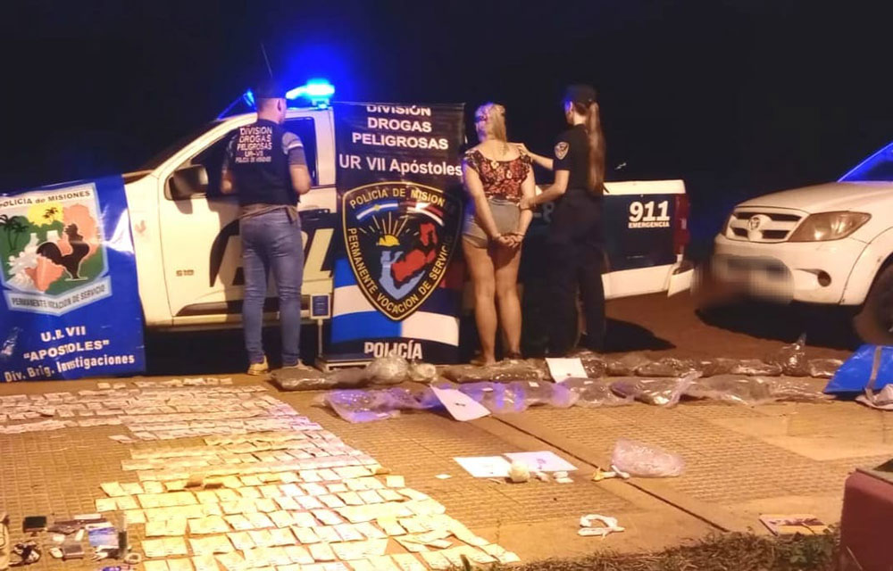 Los efectivos secuestraron un bolso repleto de marihuana, como así también cocaína fraccionada, un teléfono celular, una balanza de precisión, dinero en efectivo y la camioneta Toyota Hilux en la cual la mujer se trasladaba.