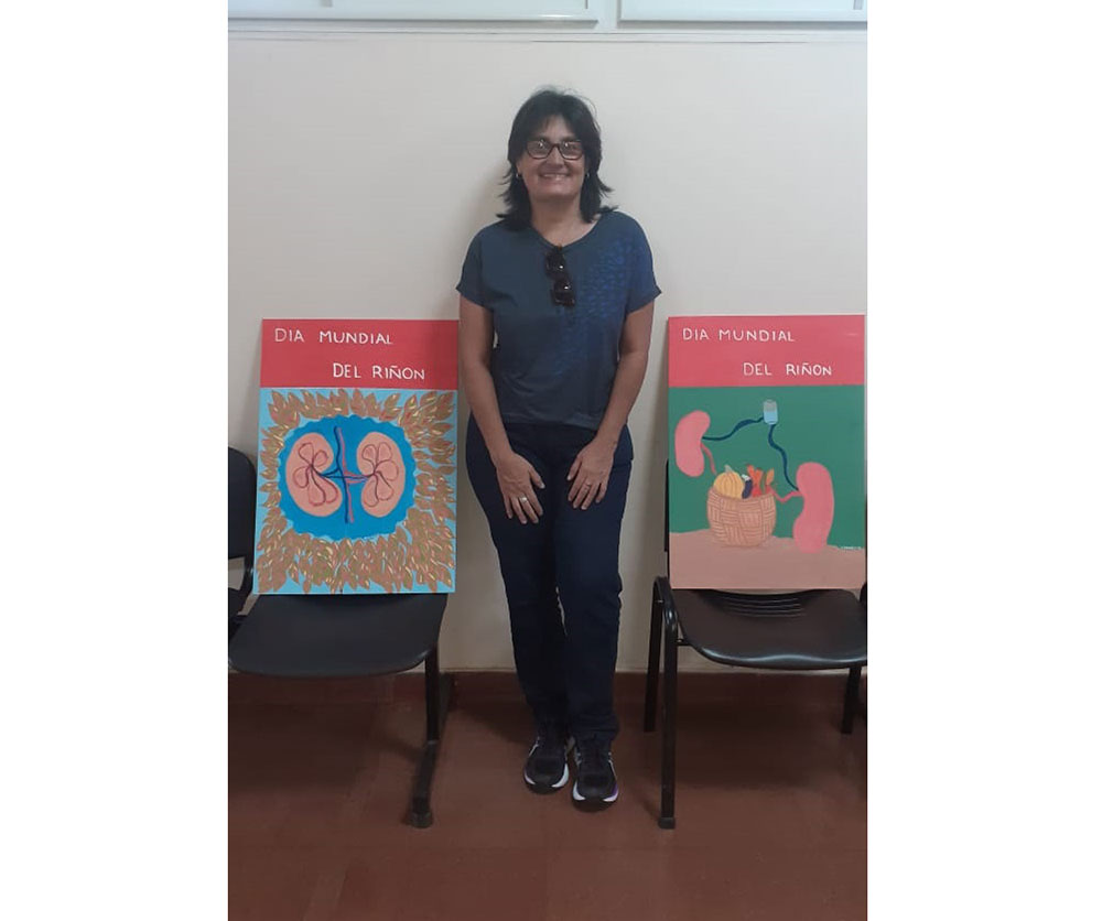 “Me acerqué al Cucaimis con mis obras de arte porque es una forma de devolver un poco todo lo que recibí de los profesionales en cuanto a asistencia, siempre me sentí respaldada y acompañada por el grupo humano del Cucaimis y por los médicos del Servicio de Nefrología; lo que hacen por nosotros es impagable. Pinto desde más o menos los 45 años y soy autodidacta. Creo que es algún don que andaba por ahí, me encantó hacerlo y colaborar como una forma de concientizar y ser parte de eso, creo que las campañas de concientización son importantes y lo bueno es aportar desde lo que uno sabe y lo que uno es”, finalizó su relato Claudia.