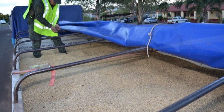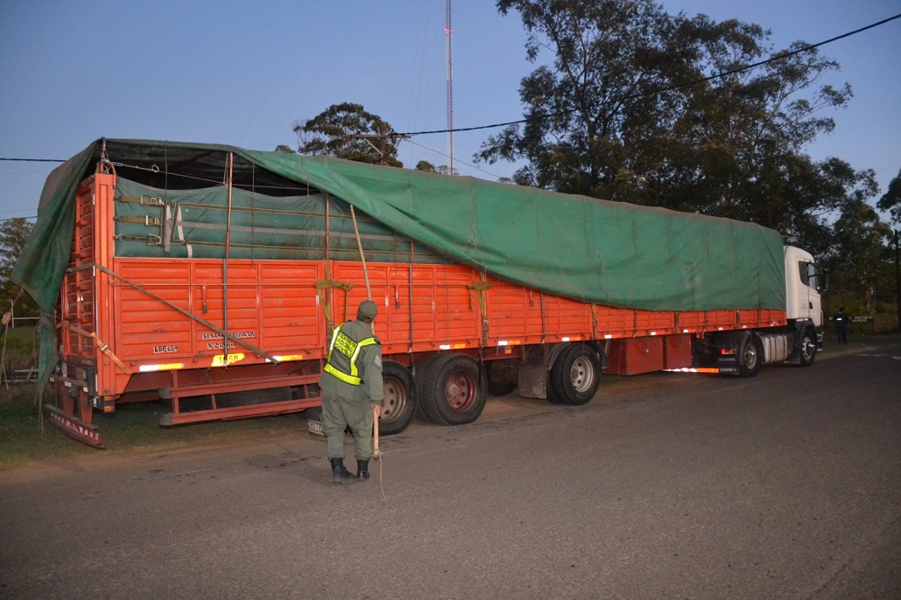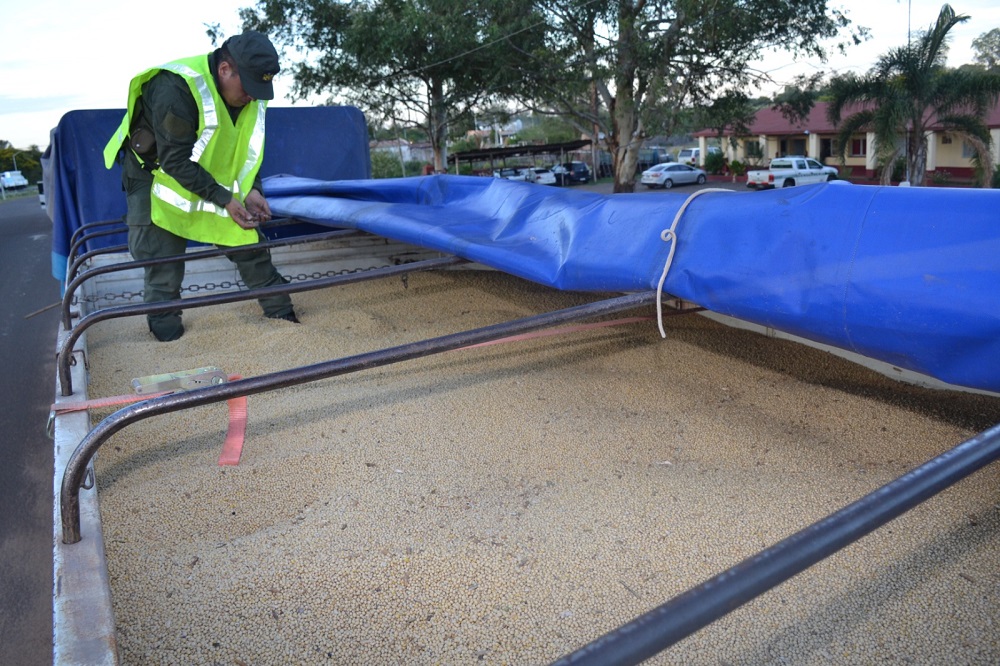 Allí, en momentos que procedían a la verificación de los dos vehículos de gran porte procedentes de Córdoba, se visualizó que transportaban soja a granel.