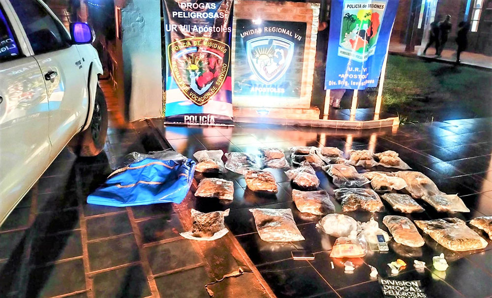 El procedimiento de la división Drogas Peligrosas de la Unidad Regional VII se desplegó frente a una plaza de la avenida Sarmiento de Apóstoles, donde fue descubierta la sospechosa como presunta conductora de una Toyota Hilux blanca doble cabina.