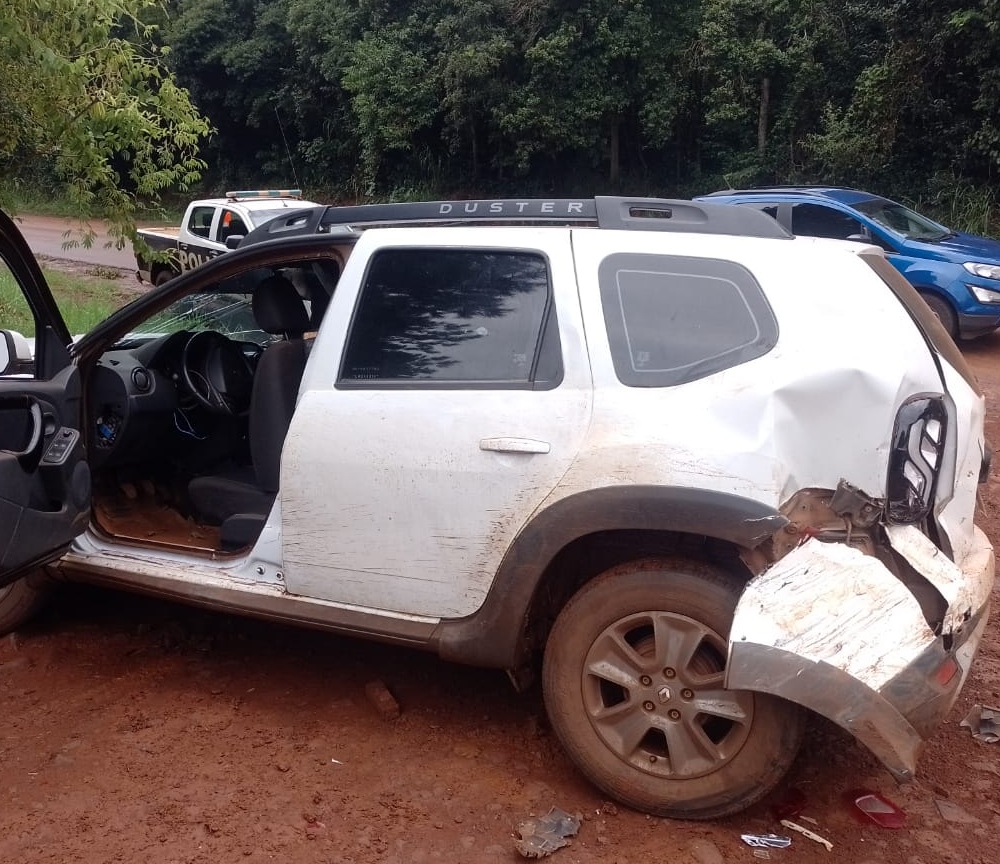 Producto de la colisión, los vehículos se precipitaron hacia la vera de la ruta, y en ese instante el conductor se fugó a una zona de monte, dejando el vehículo y la carga de cigarrillos a su paso.