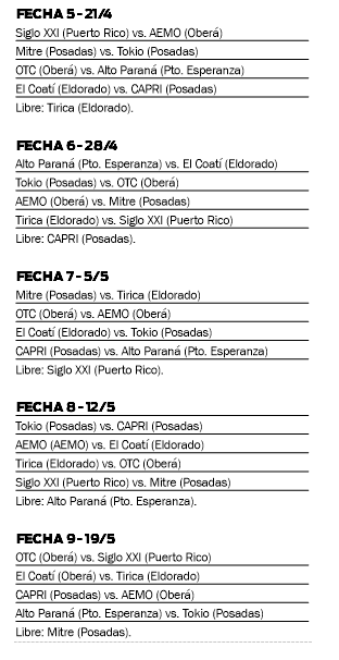 La actividad de la primera fecha tendrá su continuidad mañana con los restantes tres juegos. Todas las miradas estarán en el estadio de la Unión Cultural de Eldorado, donde Tirica recibirá a Tokio. Por su parte, en Puerto Rico, Siglo XXI será anfitrión del debutante Alto Paraná de Puerto Esperanza, que vuelve a la Liga A después de casi una década.