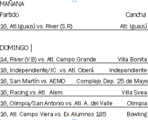 El resto de los encuentros de la primera fecha se cumplirán el domingo 19.