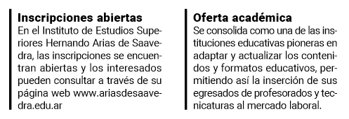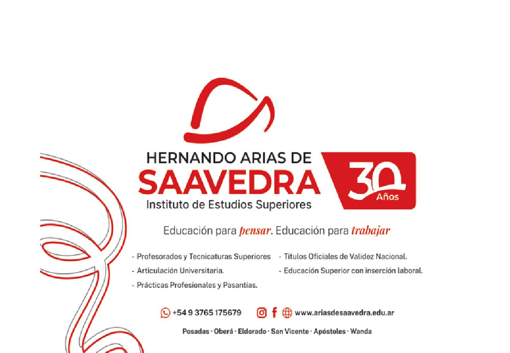 El Instituto de Estudios Superiores Hernando Arias de Saavedra cumple tres décadas en la educación superior acompañando el proceso de desarrollo y transformación de la región, ofreciendo tecnicaturas y profesorados, que incluyen una propuesta dinámica en sus planes de estudio que invitan a afirmarse y reflexionar a través de diferentes experiencias.