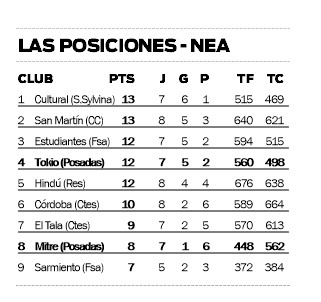 En cuanto al rival de turno, Cultural llega a Posadas agrandado por el contundente triunfo que cosechó el último miércoles por la noche en el microestadio Norberto “Coco” Viñetta de Santa Sylvina, ni más ni menos que ante el otro posadeño en el torneo, Bartolomé Mitre, por 73-53.