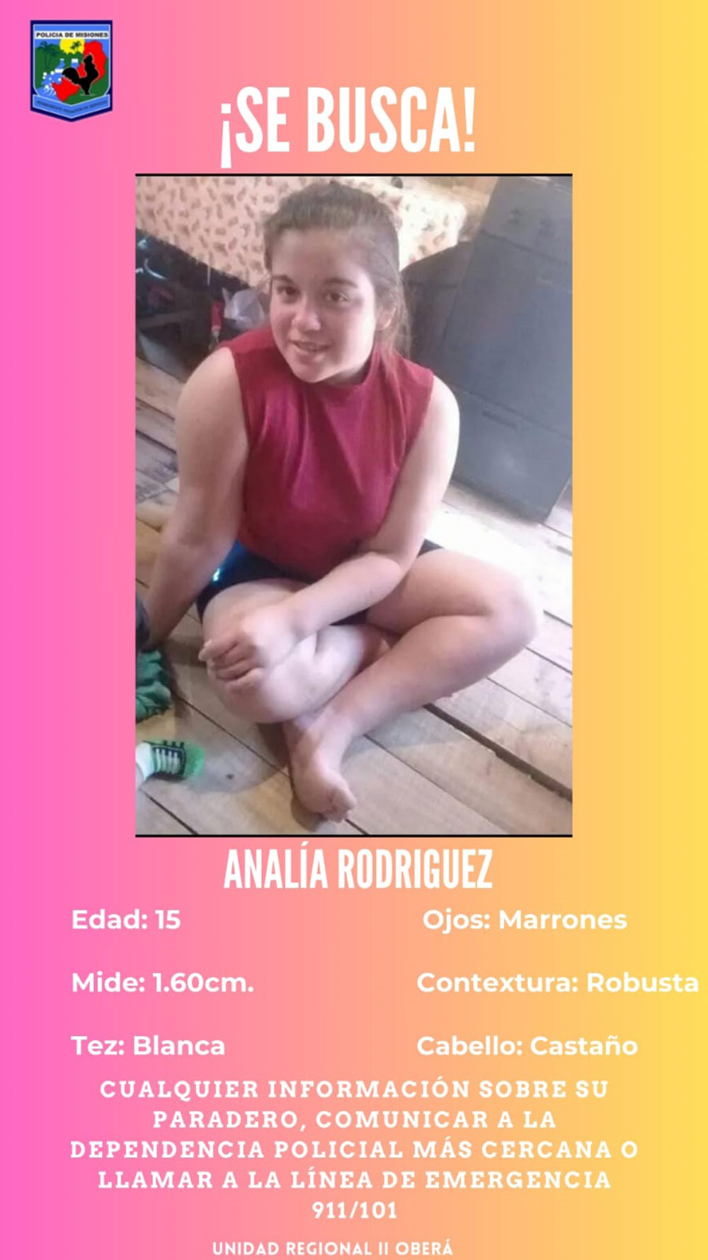 Cualquier información al respecto, por favor de comunicarse a las líneas gratuitas 911/101 o acercarse a la dependencia policial más cercana.