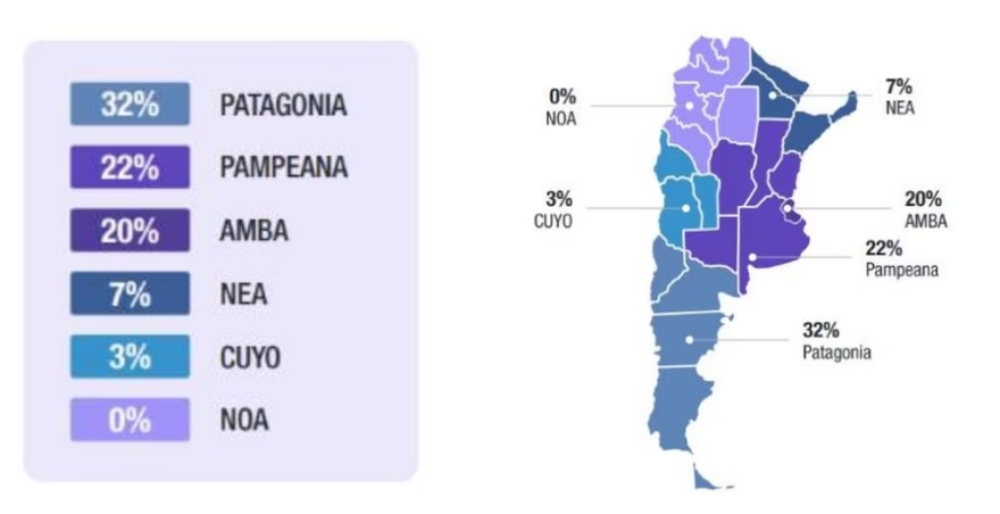 La Patagonia lidera esta tendencia, con un +32%, seguida por la Pampeana, con una ENE +22%. El tercer lugar es ocupado por el Área Metropolitana de Buenos Aires (AMBA) con el 20%, según Manpower.