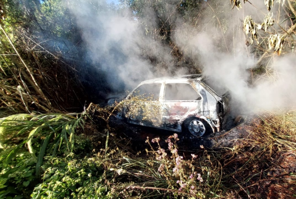Esta mañana a la altura del kilómetro 27 de la ruta nacional Nº14 en San Pedro, un vehículo Volskwagen Gol quedó totalmente destruido a causa de un incendio.