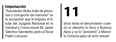 El obereño, figura como quien se relacionaba a través de las redes sociales y captaba a los menores de quienes abusaba y, a su vez, se los presentaba a otras personas. Uno de esos casos fue el de un niño de 11 años que le presentó a Corazza.