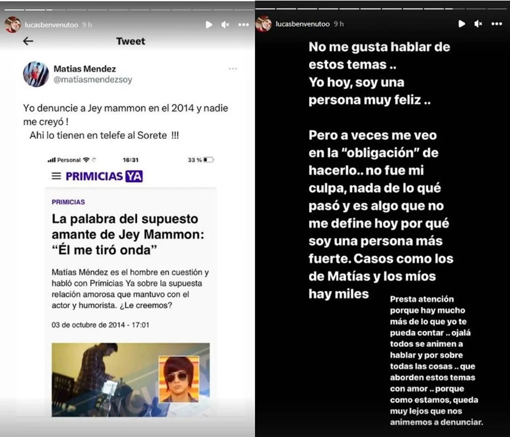 “Hace un año y medio decidí hacer mi última denuncia porque me lleva tiempo poder hablar y denunciar. Esta persona está conduciendo un programa en Telefe. Es un conductor y músico. Yo salí con él desde los 14 años hasta los 17. Mi mamá ha estado al tanto de eso. Lo conoció. Mi mamá llamaba a su casa para preguntar: ¿Lucas llegó?. Él tenía 32 y yo, 14“, relató Lucas al programa A la Tarde de Karina Mazzocco.