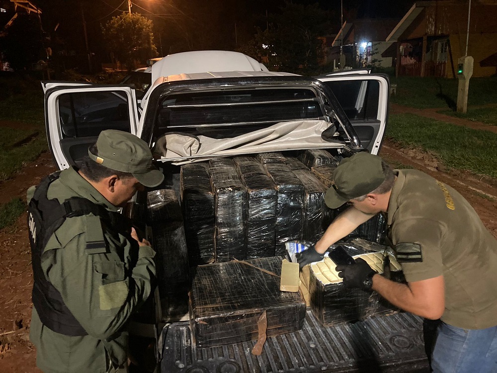 Este jueves personal de Gendarmería Nacional atrapó en un barrio de Puerto Piray al conductor de una camioneta que llevaba en su interior nada menos que 1.011,170 kilos de cannabis sativa, seccionado en 1.374 paquetes.
